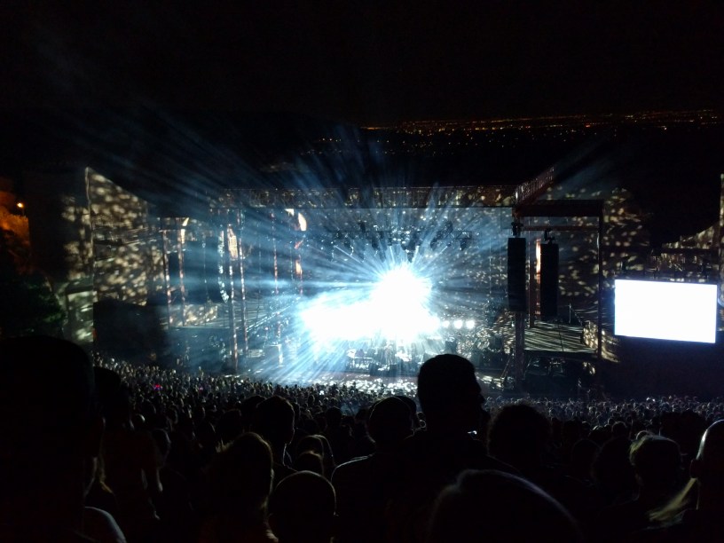 This concert also featured one of the strangest/ oddly glorious ends to a concert I have ever seen. They announced it would be the last song launching into the perfect closer “All My Friends.” It sounded great and everyone went nuts as James Murphy and company walked off stage. However, they popped out again a few minutes later with Murphy saying one of the guitar players had an instrument malfunction and that the way the song was played “hurt his heart”, so he asked if they could play it again. So we ended up with a second encore of the same song, with everyone in the audience getting more worked up then they had the first time! It was a very strange but somehow fitting in to one of the best concerts I have ever attended. As we headed down the mountain to catch a Lyft we were left thinking about the powerful impact of the concert, wishing that we would have been able to stay one more night to see LCD perform another spiritual set at Red Rocks the next night.
